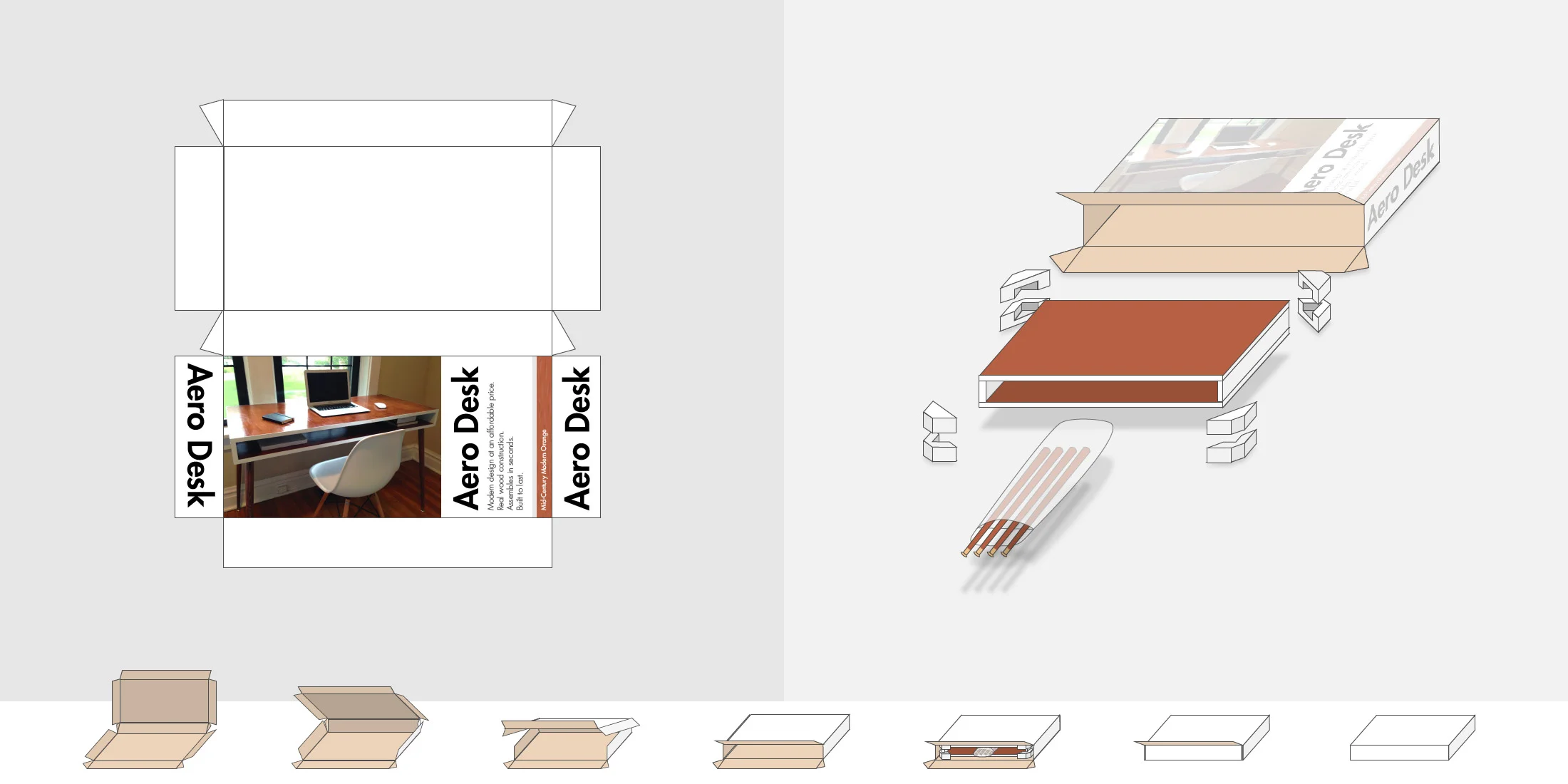 The minimal design also made for efficient packaging. Tucking the four legs inside the main compartment saves considerable space and allows the desk to be safely packed flat within a 7.5" x 2.5" x 51" box. Not only does this efficient packaging make shipping easier, but it also presents the consumer an opportunity to install the legs and gain an appreciation for the build quality. This is in stark contrast to the frustrating build experience of typical economy desks.