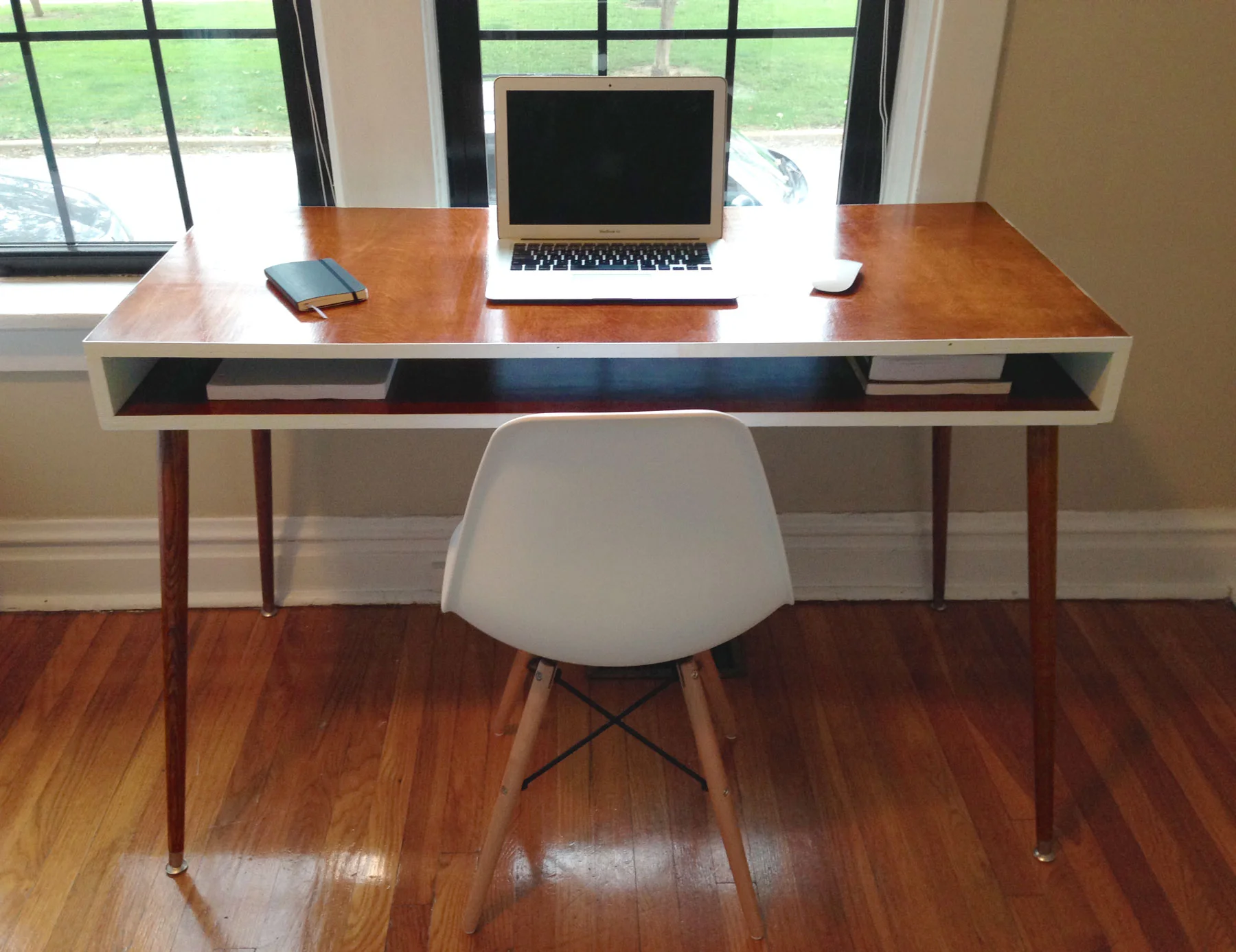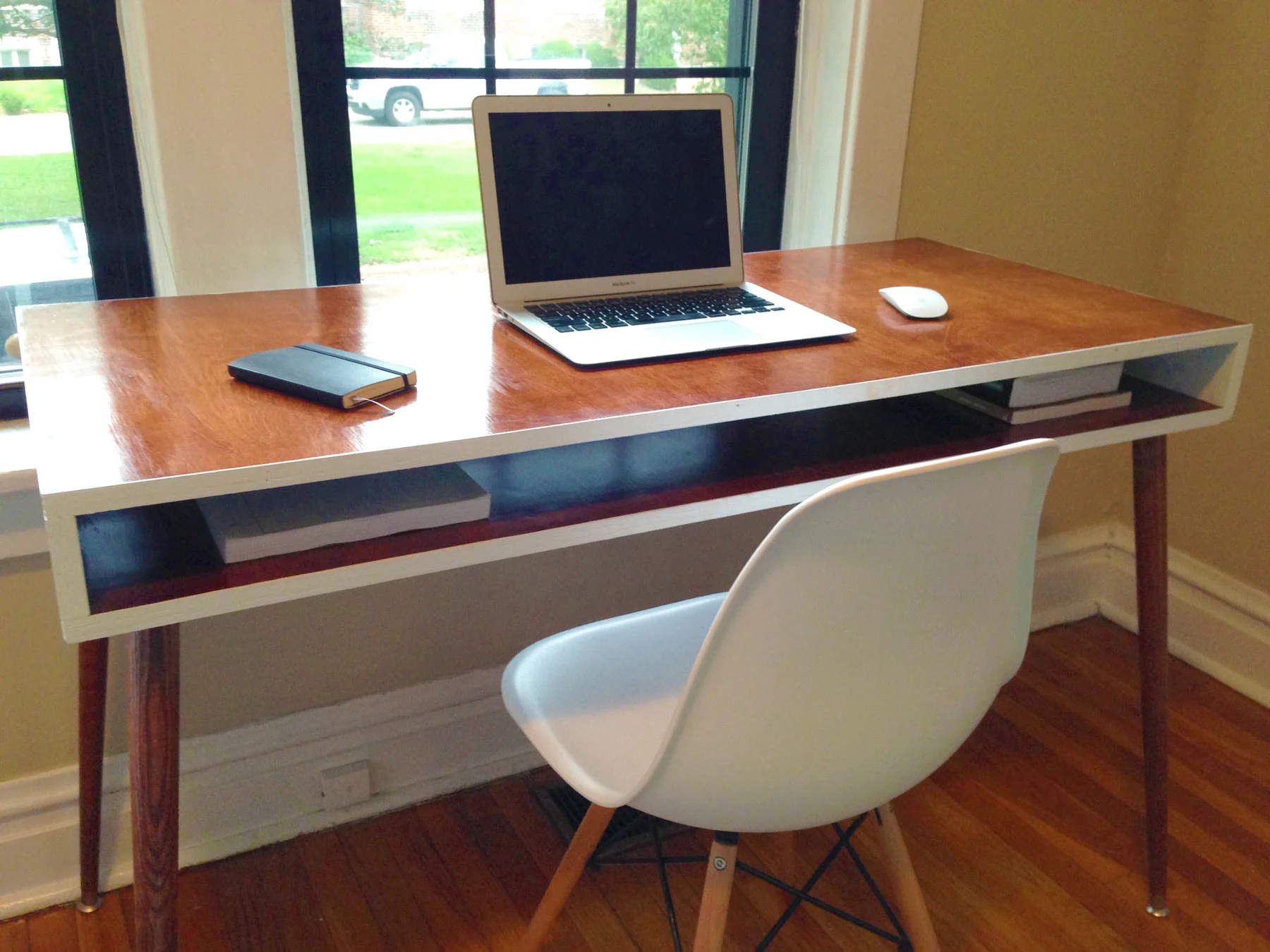 I used 3/4" hardwood plywood for this project. While typical economy desks use MDF to save on cost, I opted for the more expensive material because it is sturdier and can be stained to a beautiful natural finish. In order to offset the higher cost of the plywood, I chose to use pre-fabricated legs and mounting hardware from Lowe's. This saved enough money to keep the overall bill of materials in line with the competition. As for the finish, I stained, painted, and applied a clear coat to every surface. This ensured that the entire desk was visually cohesive, robust, and waterproof.
